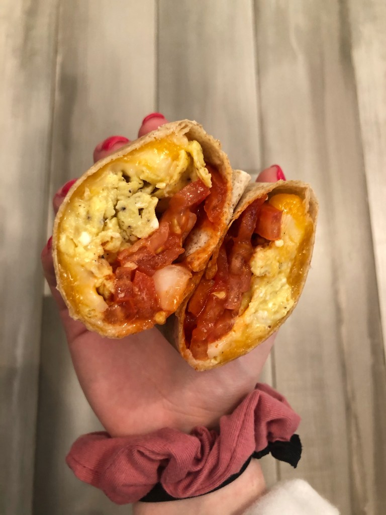 Now, last but not least, the shining star of my attempts thus far is indisputably the breakfast burrito. I personally don’t eat meat on Fridays during Lent and I found myself bored of plain eggs and toast — so I got myself a tortilla, melted some cheese, scrambled some eggs, chopped up some tomato and onion, drizzled a bit of Sriracha and oh baby. One was not enough. I could have had thirty. I didn’t, don’t worry… but I could have…